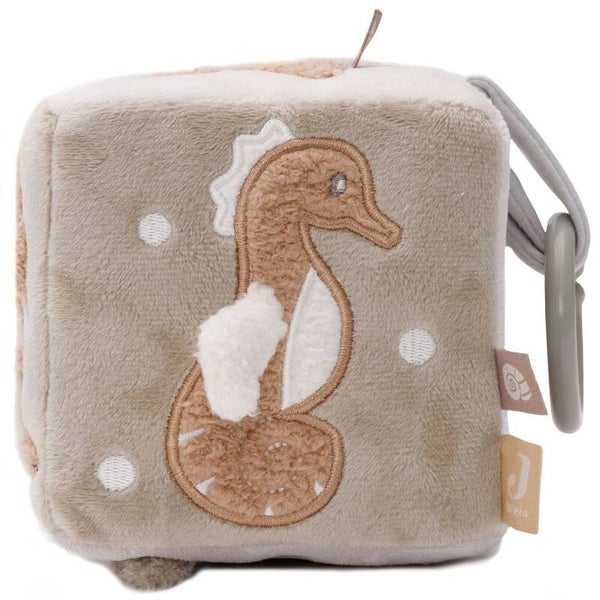 Le cube d'activités Deepsea de Jollein est conçu pour stimuler la coordination œil-main de votre bébé tout en développant sa motricité fine et ses sens. Ce jouet deviendra rapidement son favori grâce à ses différentes activités : un miroir, du papier froissé, des étiquettes et textures variées, ainsi qu'un anneau de dentition. L'anneau permet aussi de facilement attraper le cube et de le suspendre à la poussette, au siège auto, au lit ou au parc.