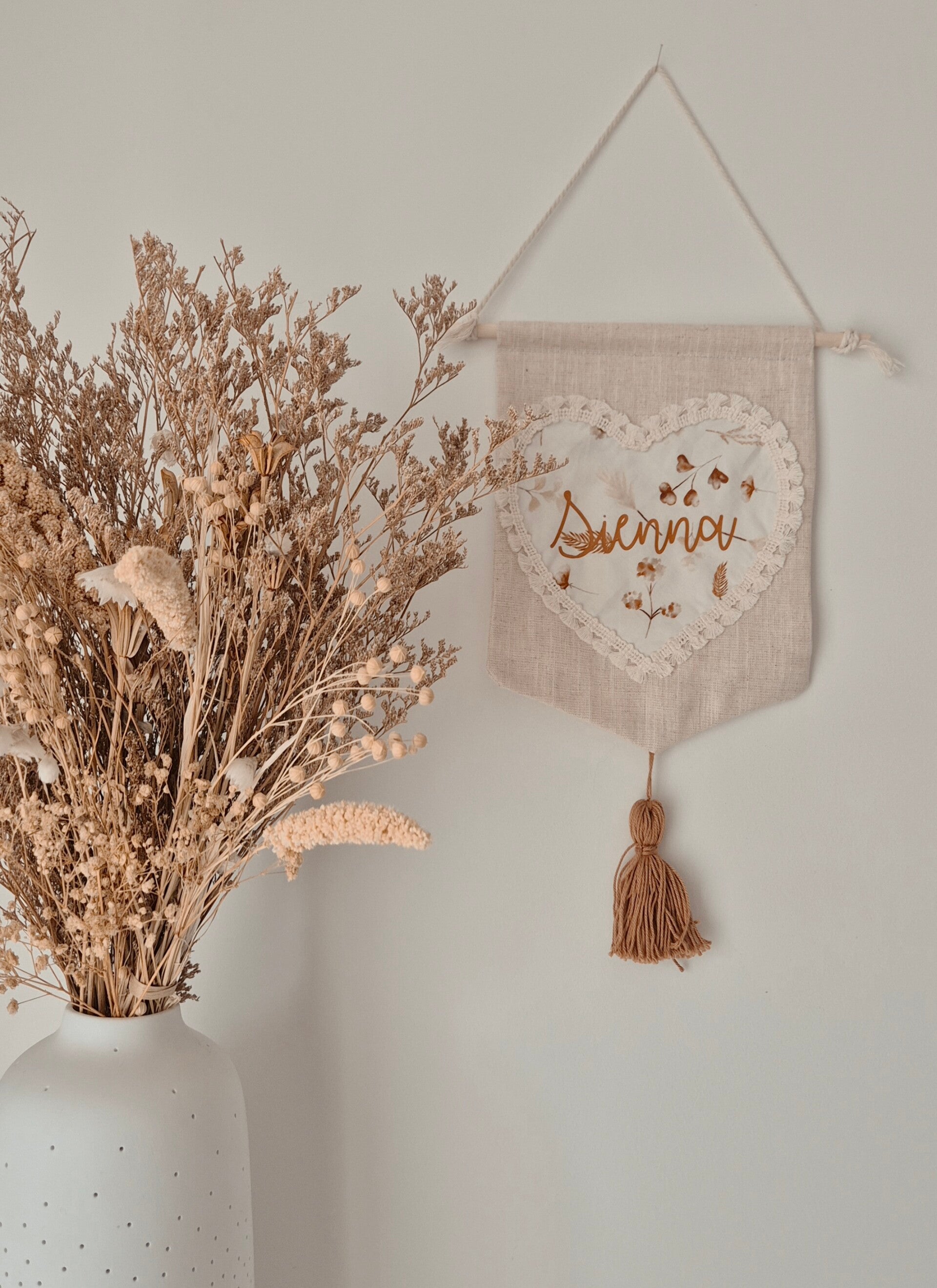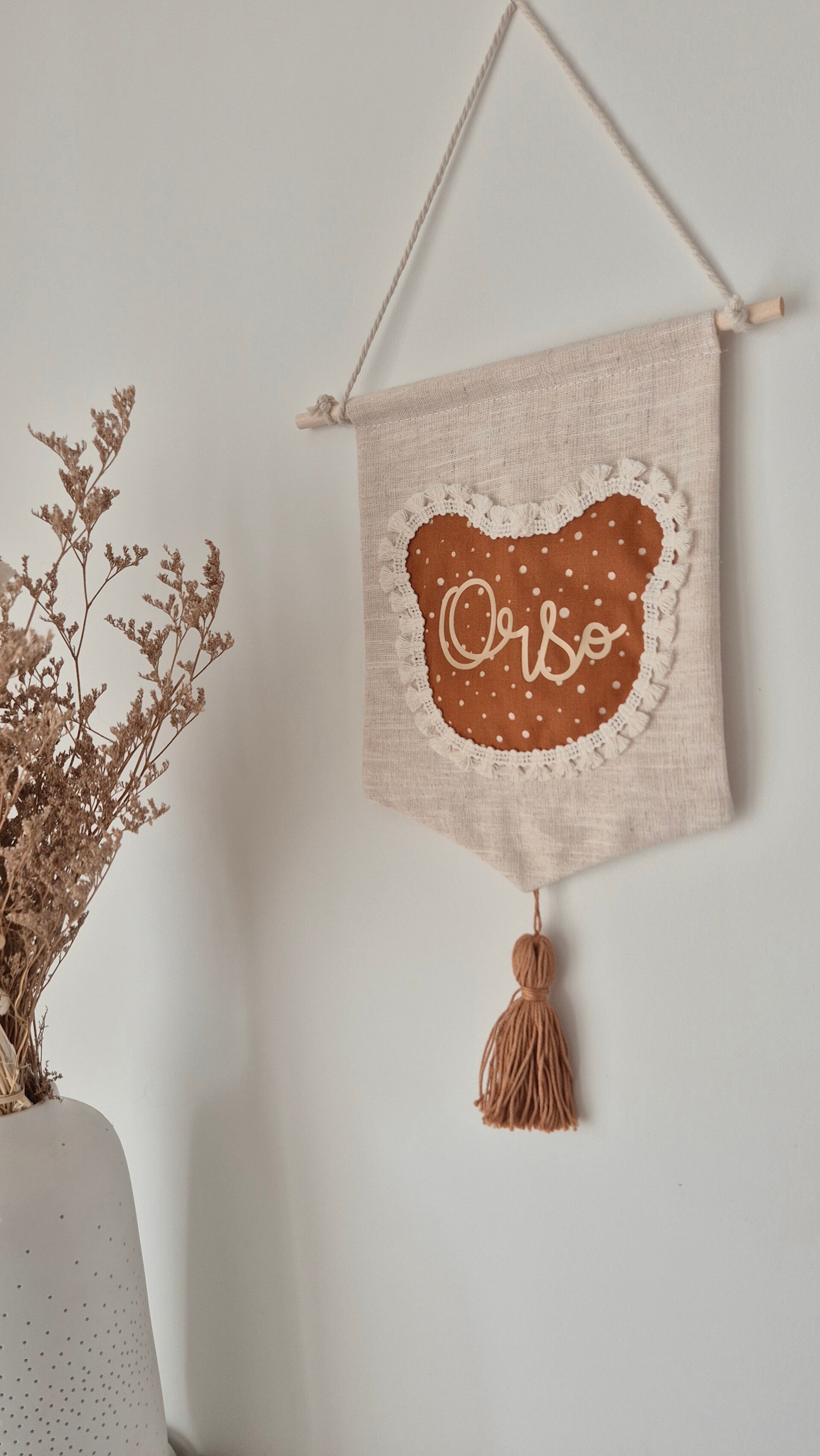 Ajoutez une touche poétique à la chambre avec ce fanion fait main, personnalisable selon vos envies. Forme, prénom et coloris au choix : chaque détail est pensé avec douceur pour créer une décoration unique.