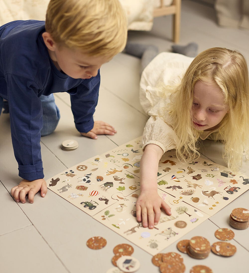 Découvrez le jeu de société Filibabba coloré, un jeu d’observation plein de vie et de bonne humeur ! Composé de 100 illustrations originales et vibrantes, il éveille la curiosité et stimule la concentration des petits comme des grands. Le plateau, formé de quatre briques à assembler, révèle un univers joyeux où chaque partie est unique. Le principe est simple et captivant : piochez une pièce, repérez le plus vite possible le même motif sur le plateau, et marquez des points !
