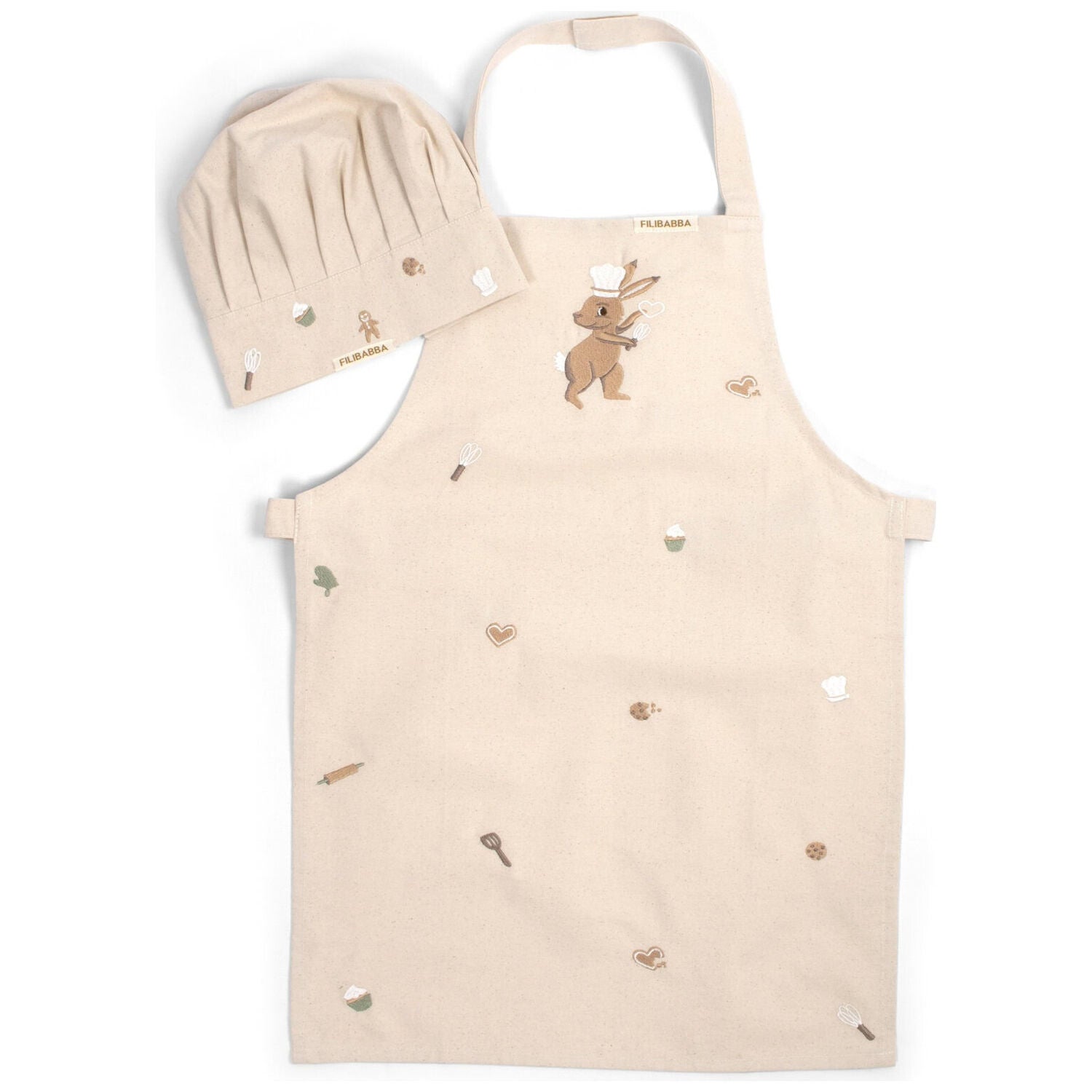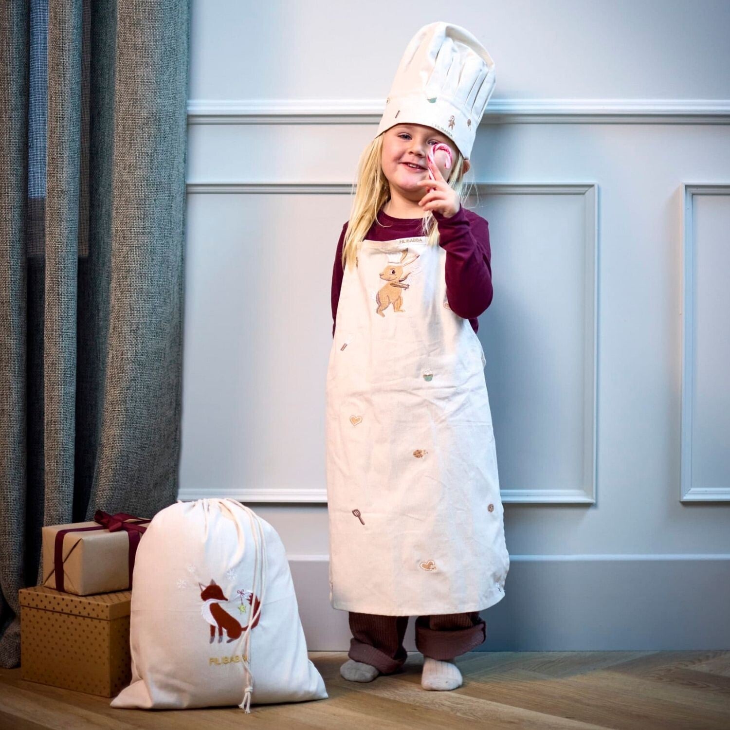 Éveillez la créativité des petits chefs avec le set tablier et toque en coton bio Wonderful Winter Lièvre de FILIBABBA ! Ce joli duo accompagne les enfants dans leurs premières aventures culinaires ou leurs jeux d’imitation, pour des moments remplis de rires et de complicité.