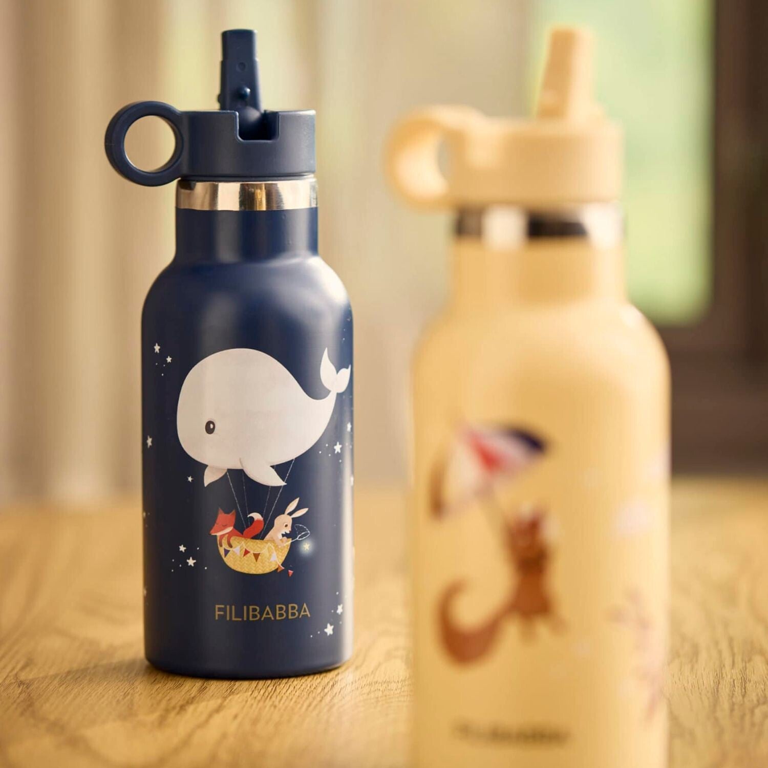 Ses illustrations féériques invitent au rêve et au voyage, tandis que ses deux bouchons interchangeables — un à vis et un avec paille intégrée — offrent confort et praticité selon les besoins.